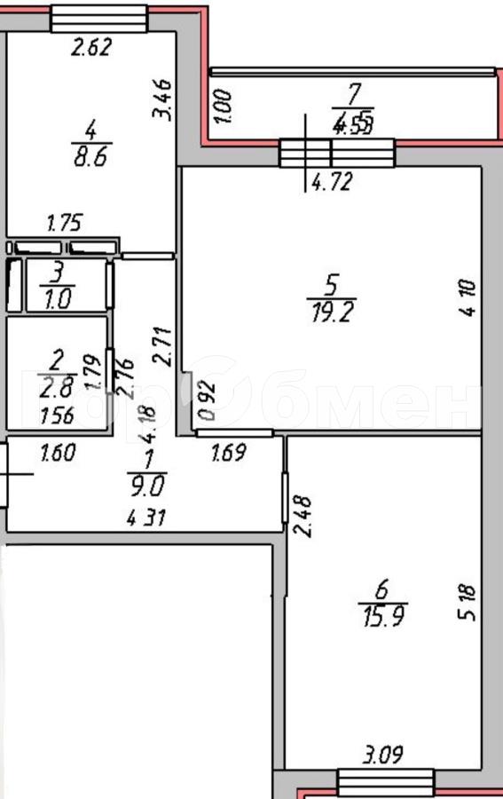 Двухкомнатная квартира 56,50 м2 по ул. Барышевская Роща 24 за 15500000 руб. |