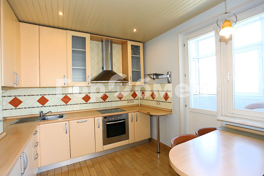 | Крылатское. Продается четырех комнатная квартира рядом с Суворовским парком. Три изолированные спальни (11,6-14,1-19,0 кв м), гостиная 19 кв м, кухня 10,1 кв м с застекленной лоджией, два санузла (гостевой туалет и полноценный совмещенный санузел с угловой ванной и душевой кабиной). Встроенная кухня с бытовой техникой: посудомоечная машина, электроплита с духовкой, двухкамерный холодильник. Встроенные шкафы в коридорах, большой шкаф в спальне, стиральная машина в санузле. Окна на три стороны. На парк смотрит кухня с лоджией. Чистый ухоженный подъезд с консьержем. Дом находится во второй линии от Рублевского шоссе, квартира светлая и тихая.