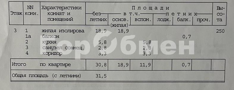 общая 31,5 м2, жилая 18,9 м2, кухни 5,8 м2 |