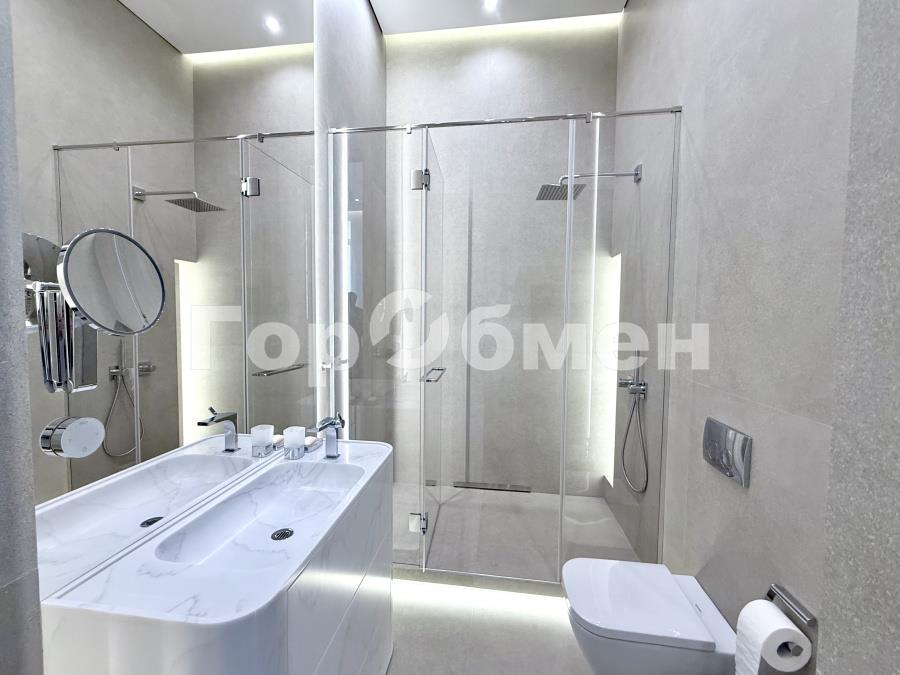 Две изолированные спальни с гардеробными и с/у, просторная кухня-гостиная, обеденная зона, лоджия, гостевой с/у, большая гардеробная для верхней одежды.