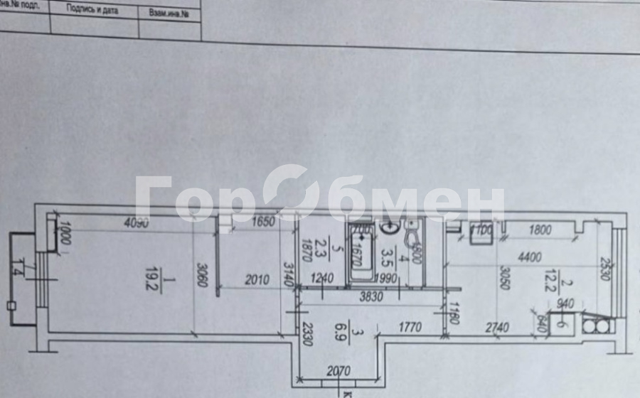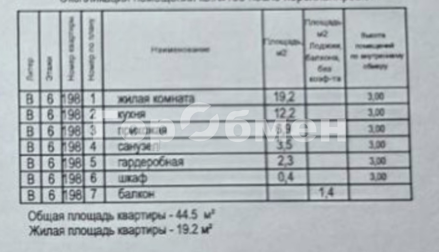 общая 44,5 м2, жилая 19,2 м2, кухни 12,2 м2 |