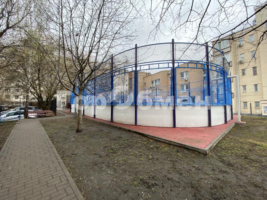 Окна квартиры выходят во двор, что обеспечивает хорошую освещённость и возможность наслаждаться видом на зелёные насаждения. Во дворе дома есть детская площадка, где могут играть дети, и спортивная площадка, где можно заниматься спортом на свежем воздухе. Закрытая территория во дворе обеспечивает безопасность и спокойствие жителей.
