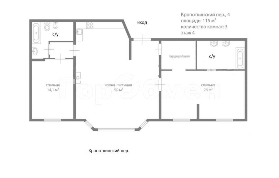 общая 115 м2, жилая 77 м2, кухни 20 м2 |