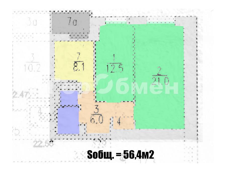 общая 56 м2, жилая 34 м2, кухни 8 м2 |