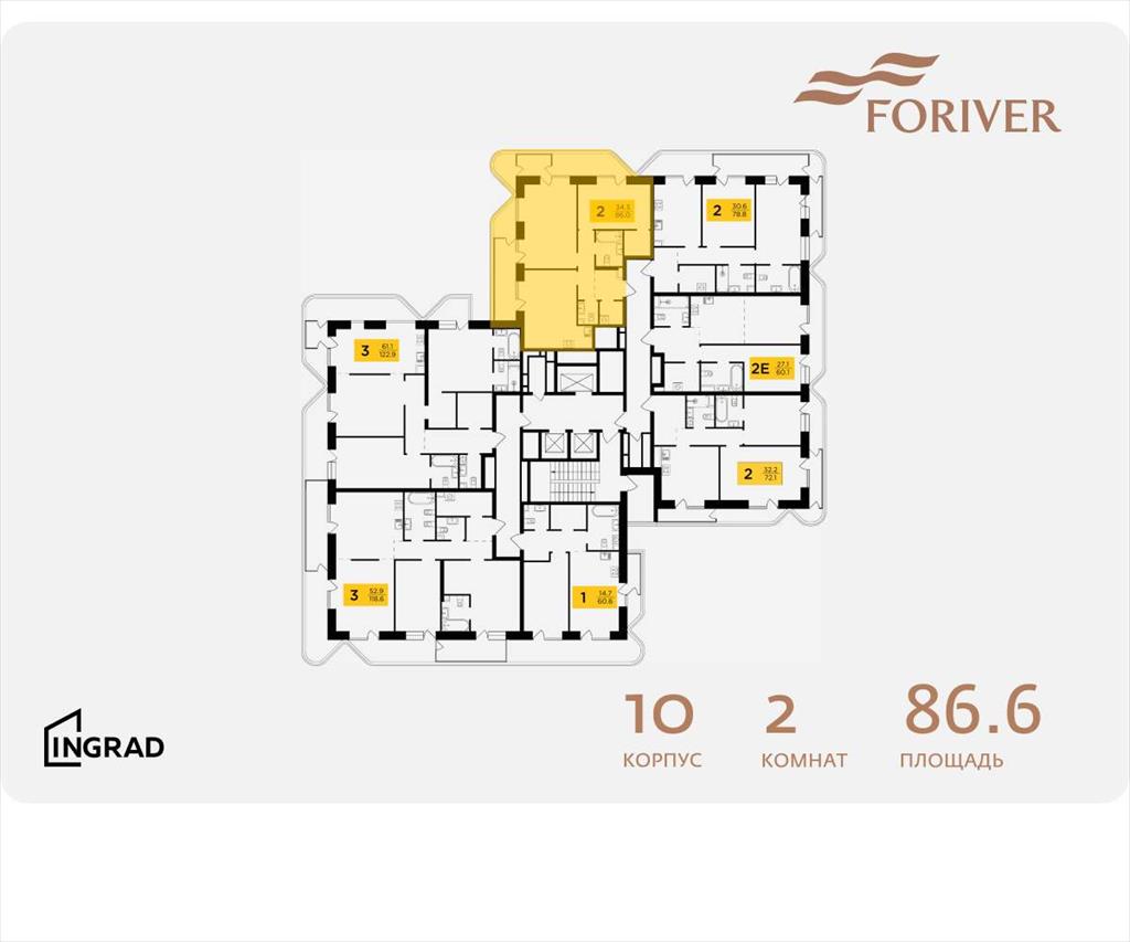 | В жилом квартале, расположенном в Даниловском районе Москвы, продаётся 3-комнатная квартира площадью 86.60 кв. м без отделки. Квартира расположена на 6 этаже 19-этажного дома, корпус 10, в жилом квартале бизнес-класса Foriver. .