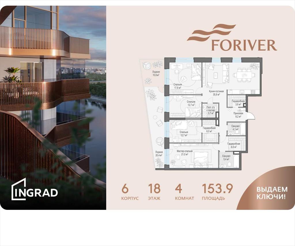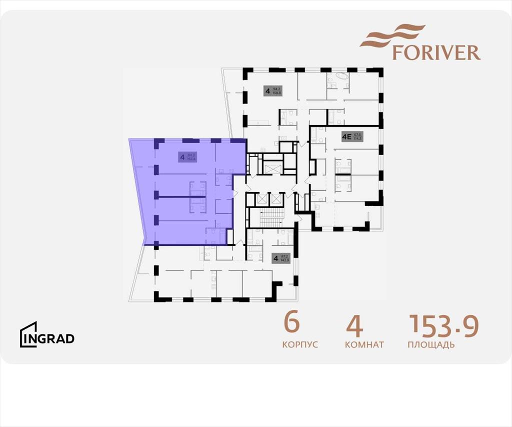 | В жилом квартале, расположенном в Даниловском районе Москвы, продаётся 4-комнатная квартира площадью 153.90 кв. м без отделки. Квартира расположена на 18 этаже 19-этажного дома, корпус 6, в жилом квартале бизнес-класса Foriver. .