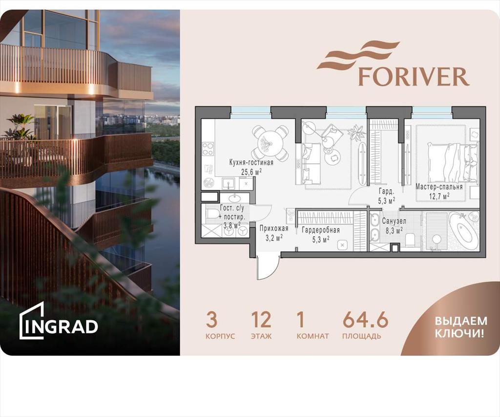 Foriver - самый близкий к Кремлю квартал на своей пешеходной набережной Москвы-реки протяжённостью 1 км. Он расположен в новом удобном районе в центре, который постоянно улучшается. Расстояние до Кремля - 4 км, до Садового кольца - 1,7 км.