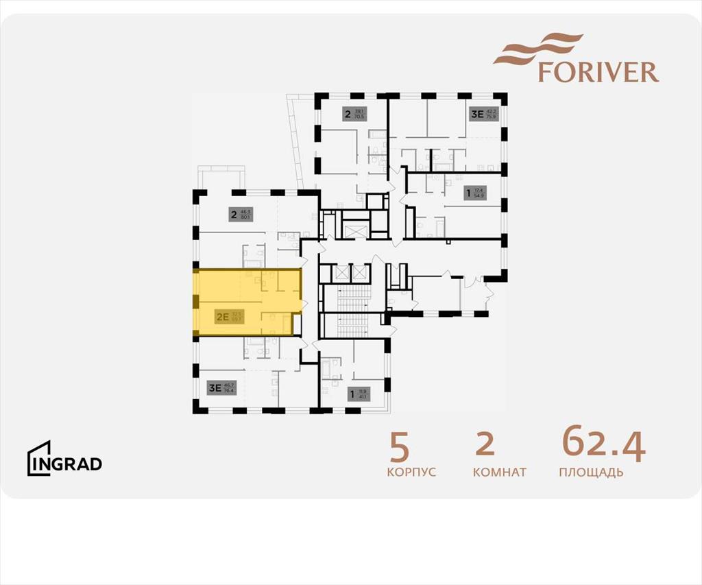 | В жилом квартале, расположенном в Даниловском районе Москвы, продаётся 1-комнатная квартира площадью 62.40 кв. м без отделки. Квартира расположена на 2 этаже 19-этажного дома, корпус 5, в жилом квартале бизнес-класса Foriver. .