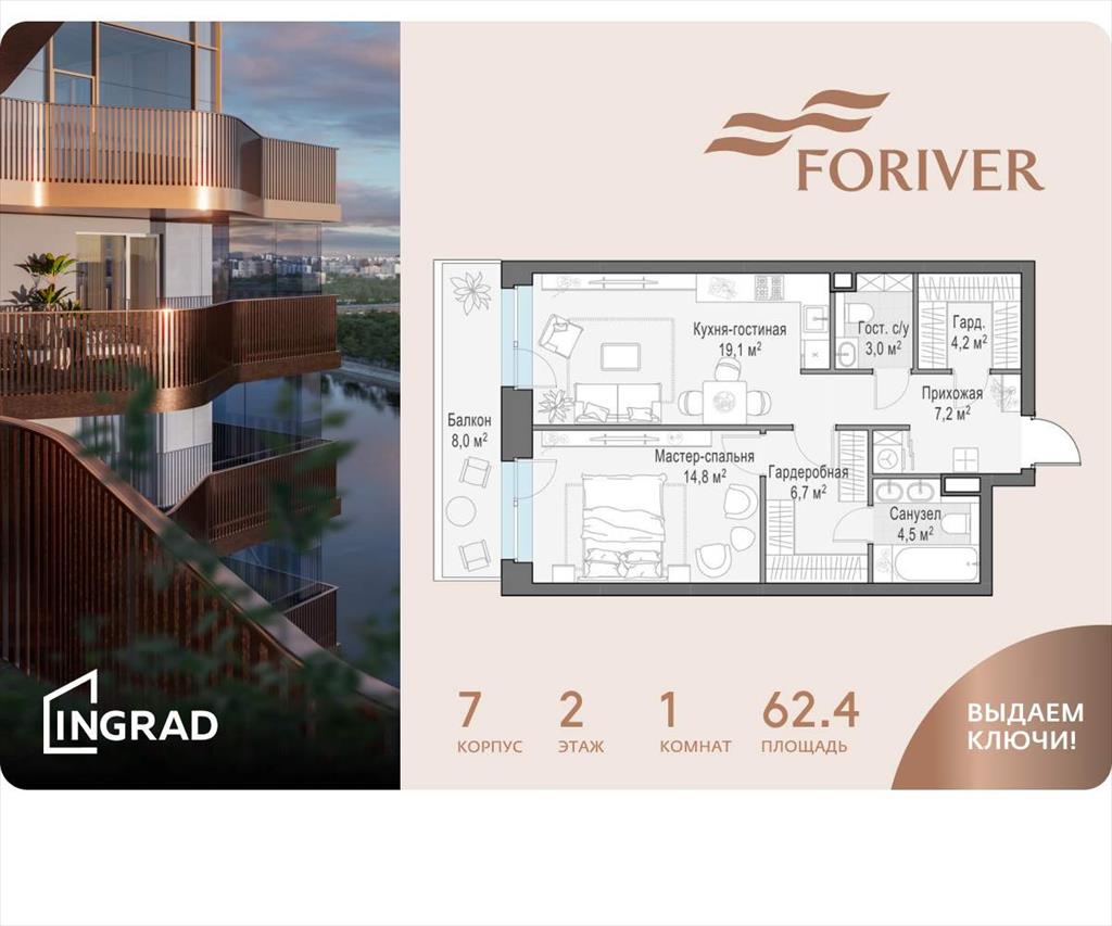 Foriver - самый близкий к Кремлю квартал на своей пешеходной набережной Москвы-реки протяжённостью 1 км. Он расположен в новом удобном районе в центре, который постоянно улучшается. Расстояние до Кремля - 4 км, до Садового кольца - 1,7 км.