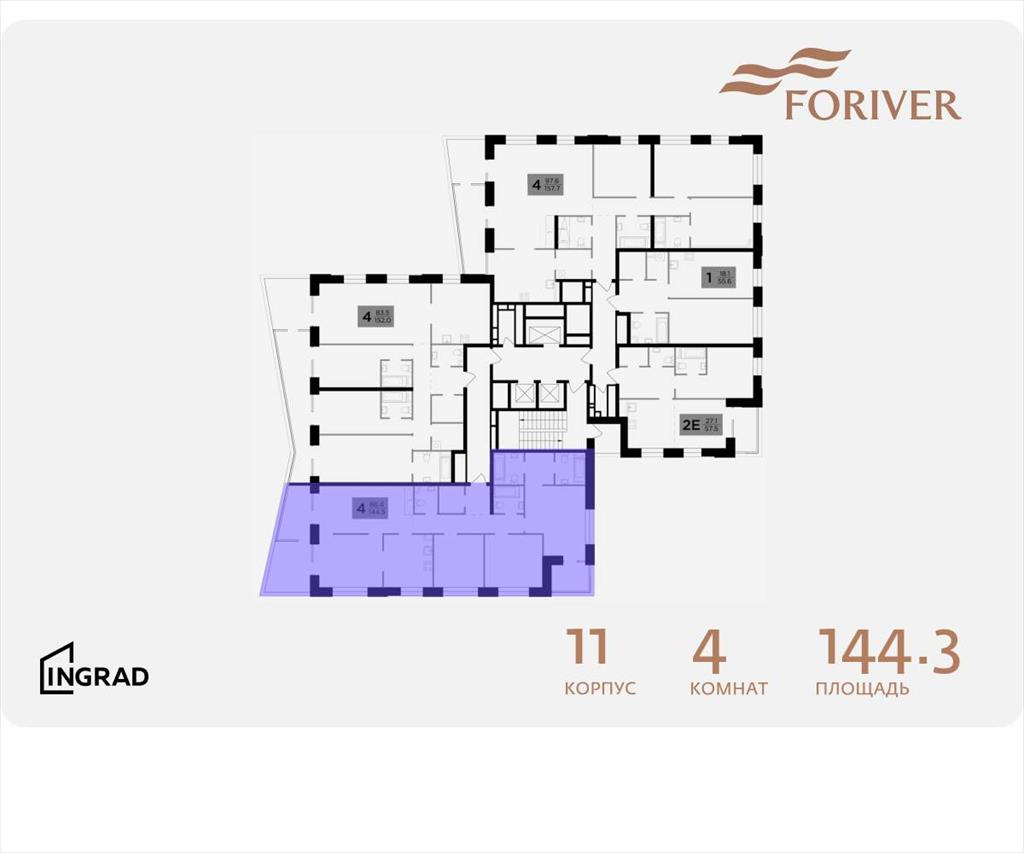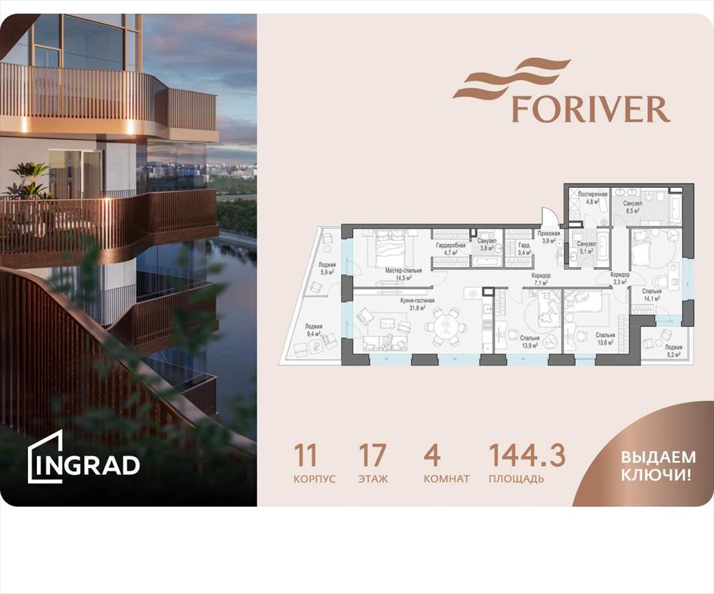 | В жилом квартале, расположенном в Даниловском районе Москвы, продаётся 4-комнатная квартира площадью 144.30 кв. м без отделки. Квартира расположена на 17 этаже 19-этажного дома, корпус 11, в жилом квартале бизнес-класса Foriver. .