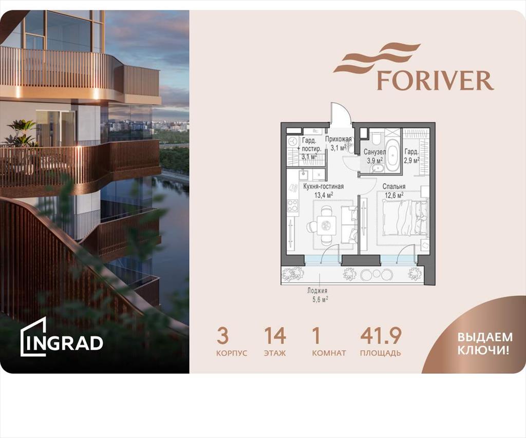 | В жилом квартале, расположенном в Даниловском районе Москвы, продаётся 1-комнатная квартира площадью 41.90 кв. м без отделки. Квартира расположена на 14 этаже 14-этажного дома, корпус 3, в жилом квартале бизнес-класса Foriver. .