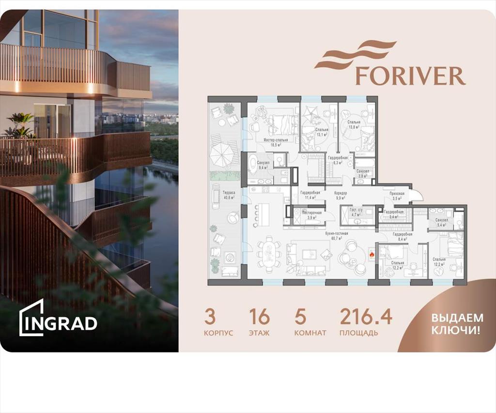 Foriver - самый близкий к Кремлю квартал на своей пешеходной набережной Москвы-реки протяжённостью 1 км. Он расположен в новом удобном районе в центре, который постоянно улучшается. Расстояние до Кремля - 4 км, до Садового кольца - 1,7 км.