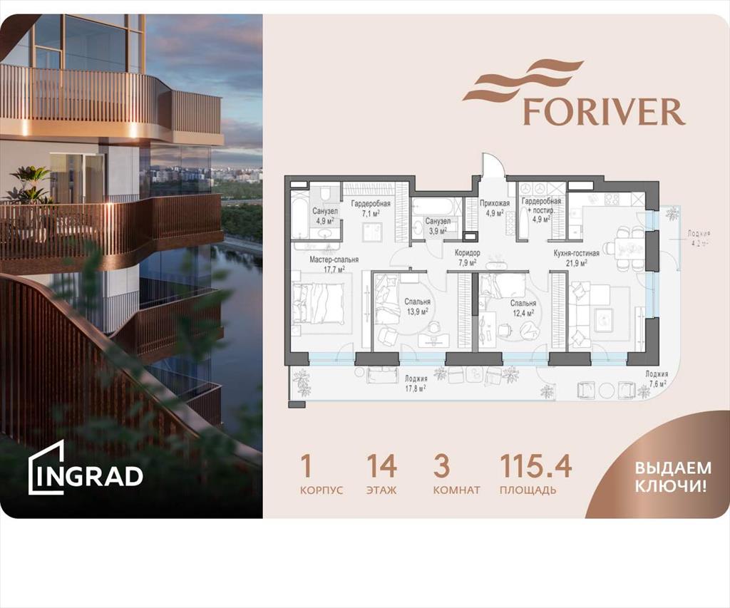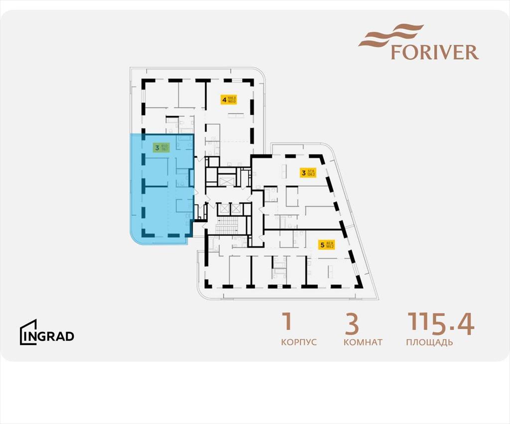 | В жилом квартале, расположенном в Даниловском районе Москвы, продаётся 3-комнатная квартира площадью 115.40 кв. м без отделки. Квартира расположена на 14 этаже 19-этажного дома, корпус 1, в жилом квартале бизнес-класса Foriver. .