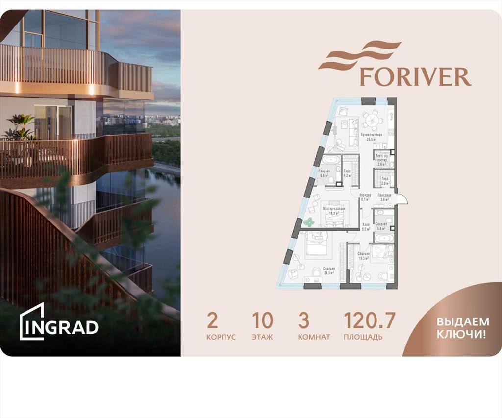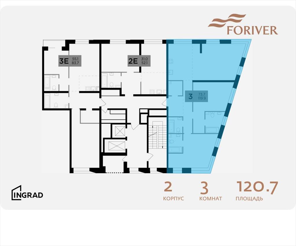 | В жилом квартале, расположенном в Даниловском районе Москвы, продаётся 3-комнатная квартира площадью 120.70 кв. м без отделки. Квартира расположена на 10 этаже 13-этажного дома, корпус 2, в жилом квартале бизнес-класса Foriver. .