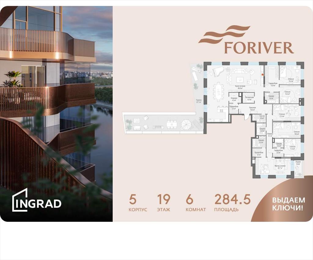 | В жилом квартале, расположенном в Даниловском районе Москвы, продаётся многокомнатная квартира площадью 284.50 кв. м без отделки. Квартира расположена на 19 этаже 19-этажного дома, корпус 5, в жилом квартале бизнес-класса Foriver. .