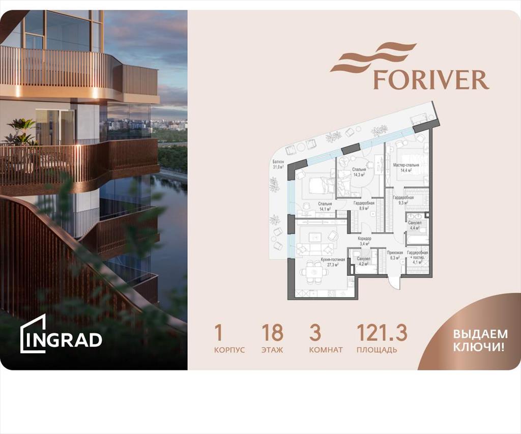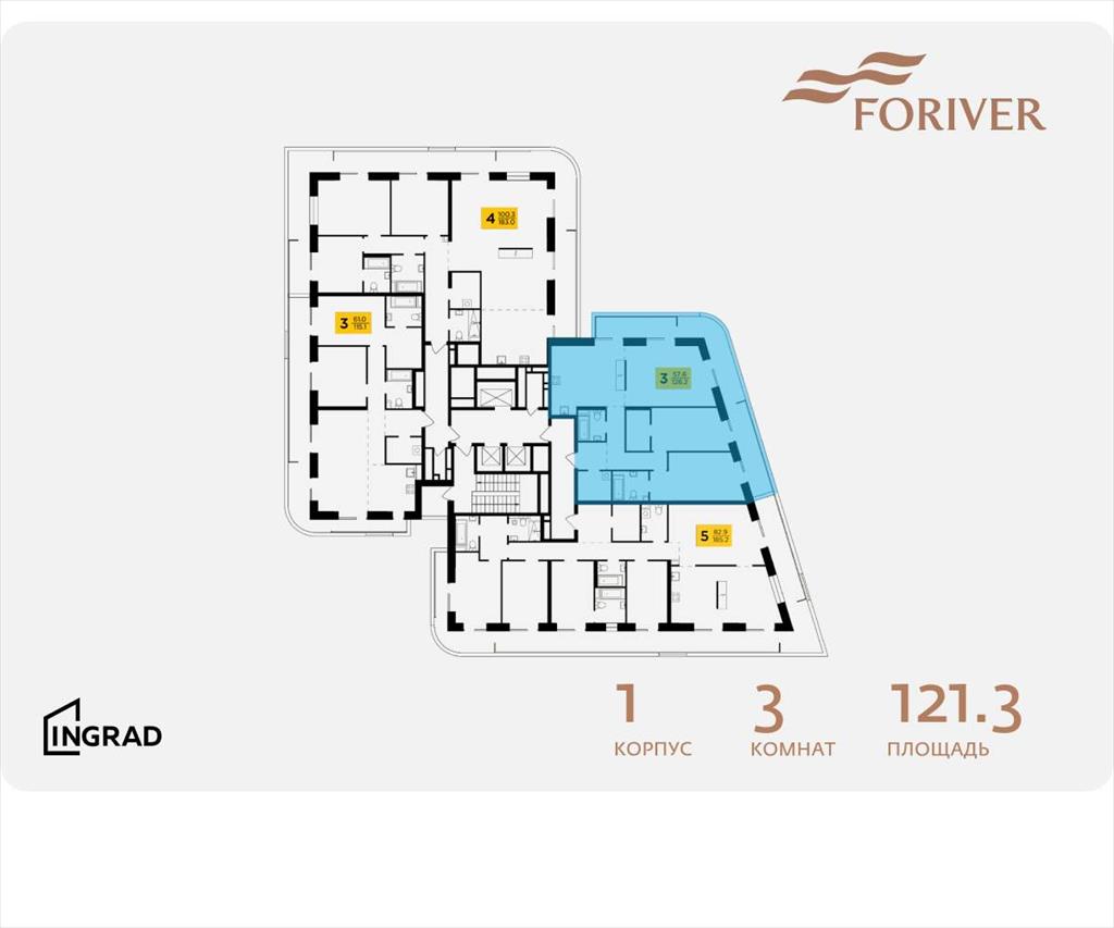 | В жилом квартале, расположенном в Даниловском районе Москвы, продаётся 3-комнатная квартира площадью 121.30 кв. м без отделки. Квартира расположена на 18 этаже 19-этажного дома, корпус 1, в жилом квартале бизнес-класса Foriver. .