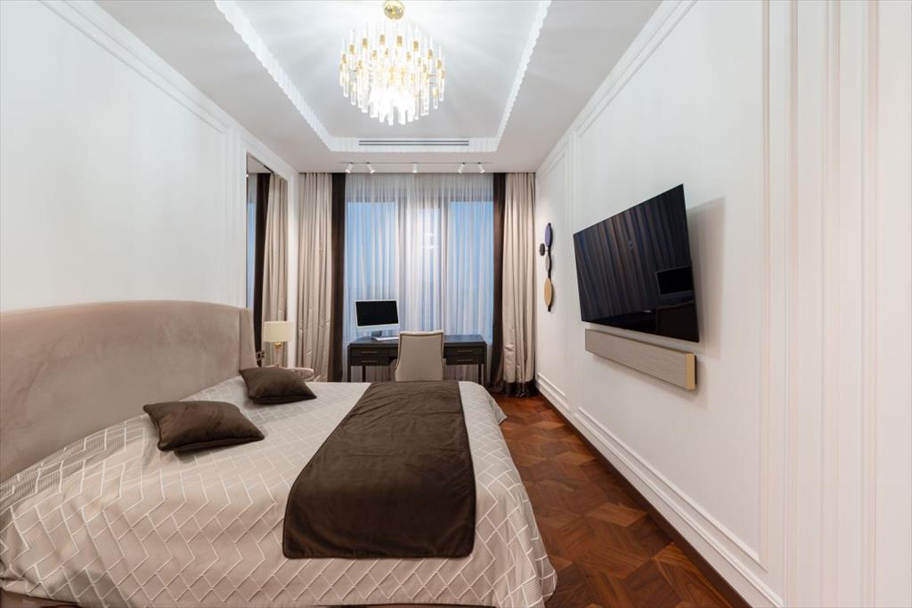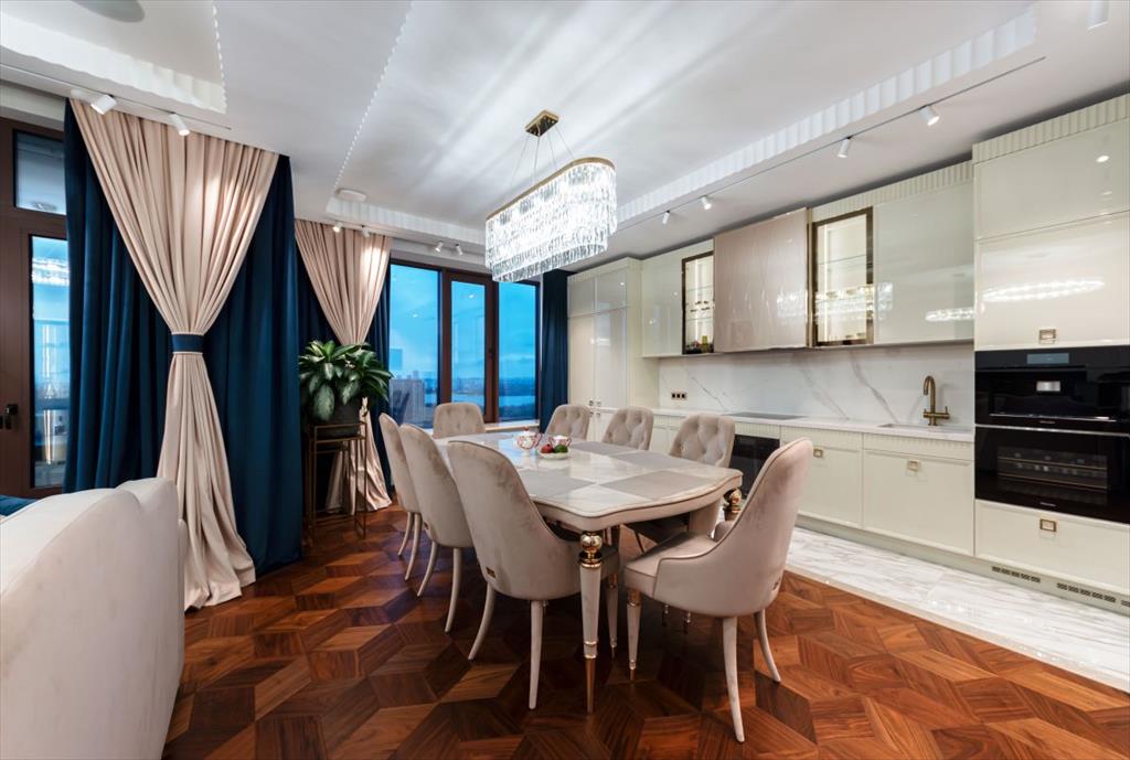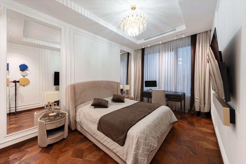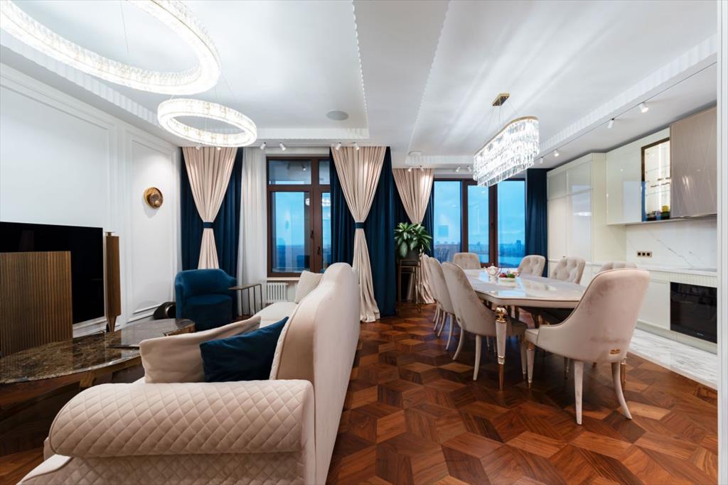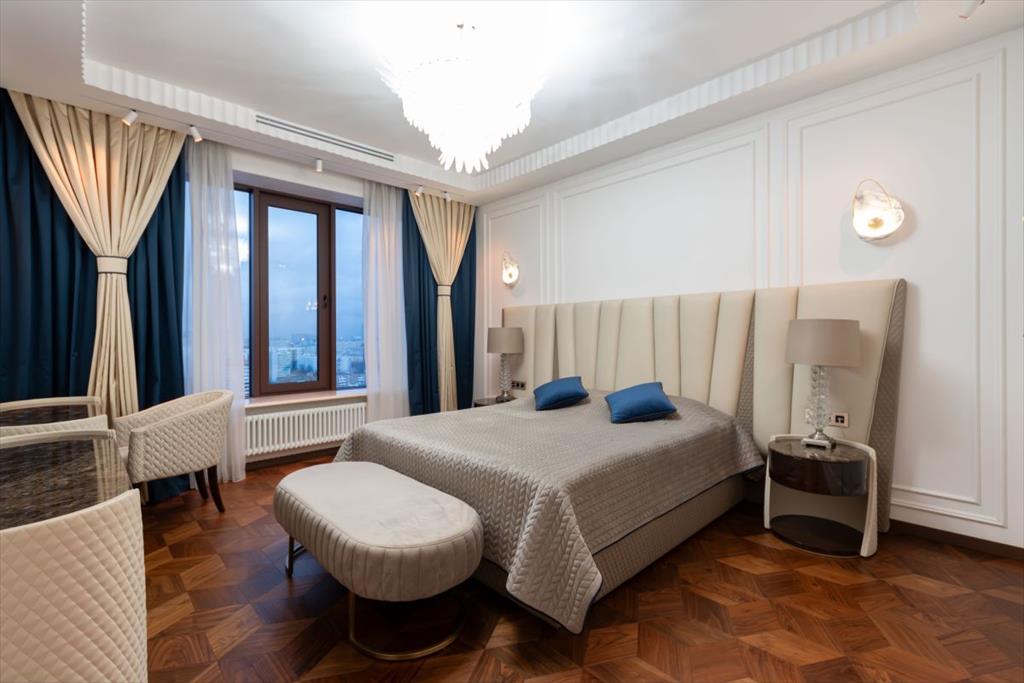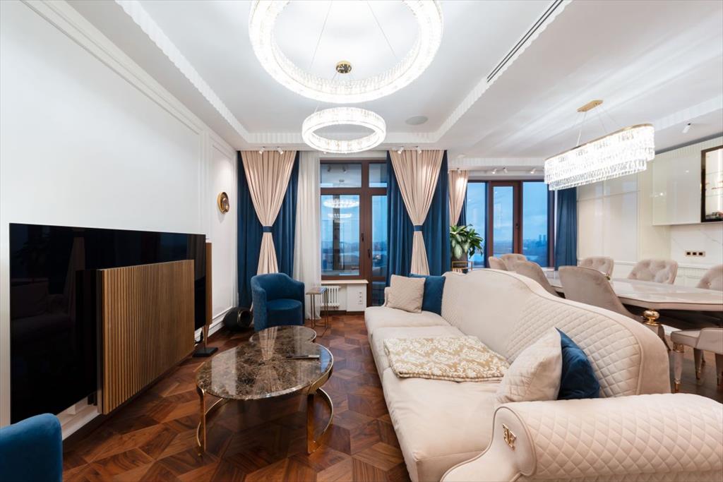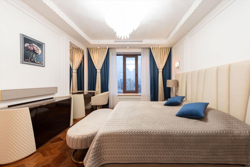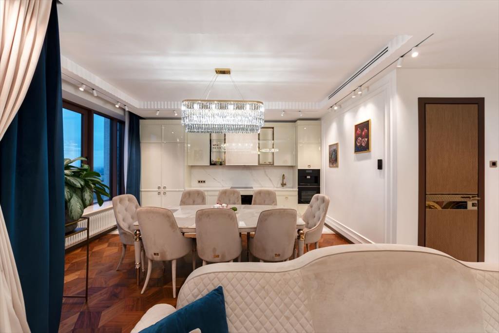 Уникальная квартира с дизайнерским ремонтом в стиле современной классики. Просторные и светлые комнаты идеально гармонируют с эксклюзивной отделкой и современной мебелью высшего качества. Квартира полностью укомплектована итальянской мебелью Capital Collection, техника Miele, две гладильные установки, парогенератор, домашний кинотеатр и акустические системы Bang & Olufsen. и сантехникой Villeroy&Boch. Также в квартире предусмотрены: шумоизоляция по всему периметру, канальная система кондиционирования с датчиками здоровья и системой увлажнения, приточно-вытяжная вентиляция breezart, TIS система умного дома.