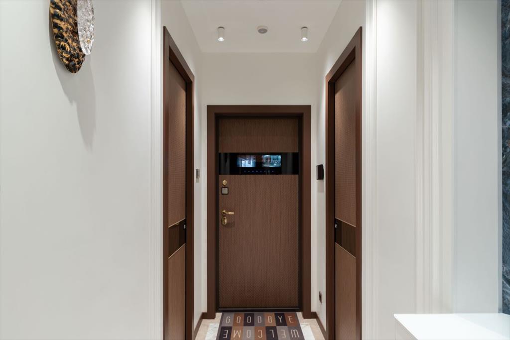 Вход в квартиру по отпечатку пальца, сенсорная панель управления квартирой и видеонаблюдение (камеры на парковку, лифт и коридор).
