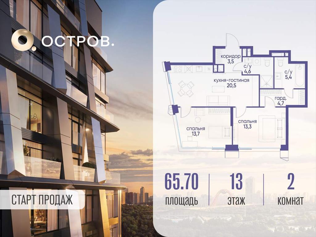 | Продаётся 2-комн. квартира от застройщика: общая площадь 65.70 м, жилая 27.00 м, кухня 20.50 м, 13-й этаж, жилой квартал «Остров 12», корпус 3 (секция 1) . Срок сдачи: 1 квартал 2029 года.