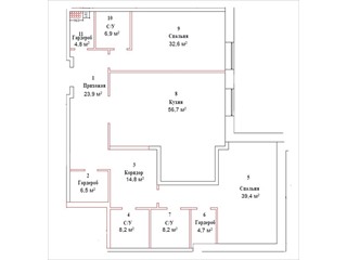 | Продам просторную 3 комнатную квартиру с двумя спальнями площадью 200,6 м2. В квартире кухня гостиная 56,6 м2, спальня 32,2 м2, мастер-спальня 35,2 м2, три гардеробные комнаты, три санузла, большой коридор. В квартире разноуровневые потолки, до 4,5 м2, что позволяет сделать при желании ещё одну комнату с мансардными окнами. В квартире все подготовлено к чистовой отделке: разведено отопление, заведено вода, канализация, электричество.