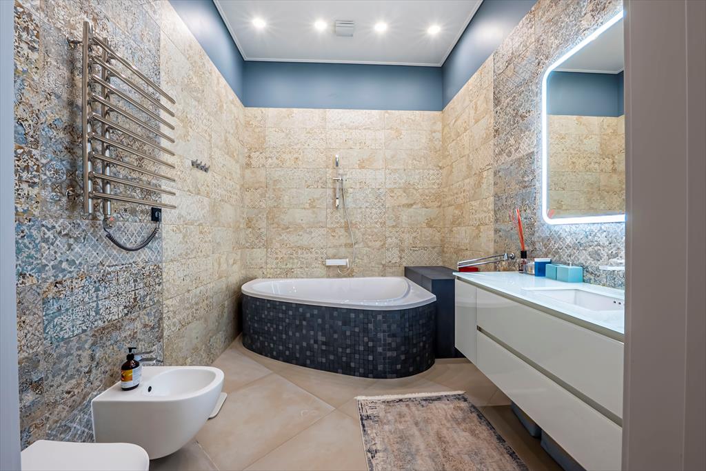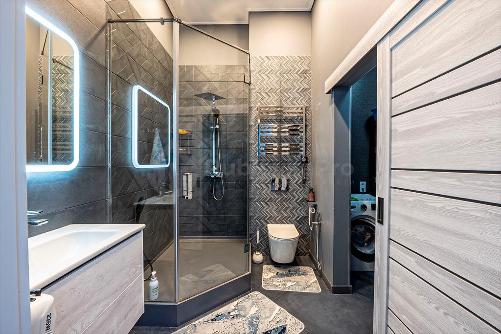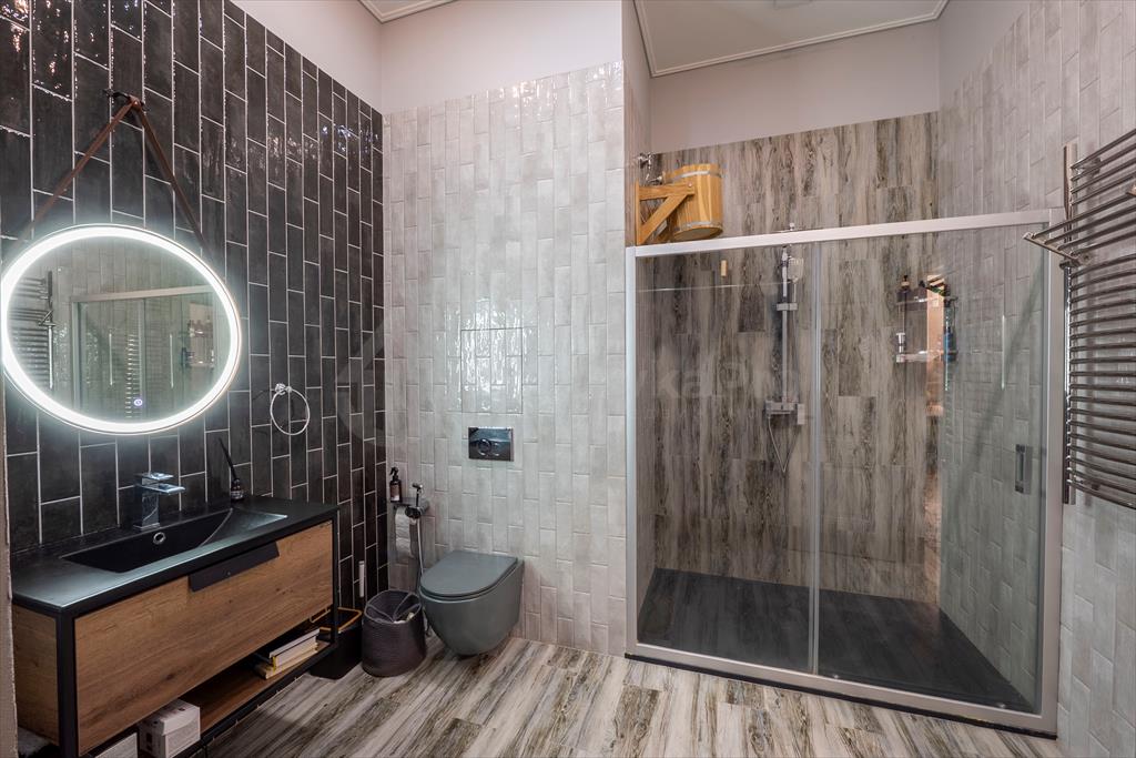 3 санузла (в одном — огромная ванна, в другом — душевая кабина с возможностью монтажа сауны, третий — гостевой санузел с системой дл я мойки лап собак);
