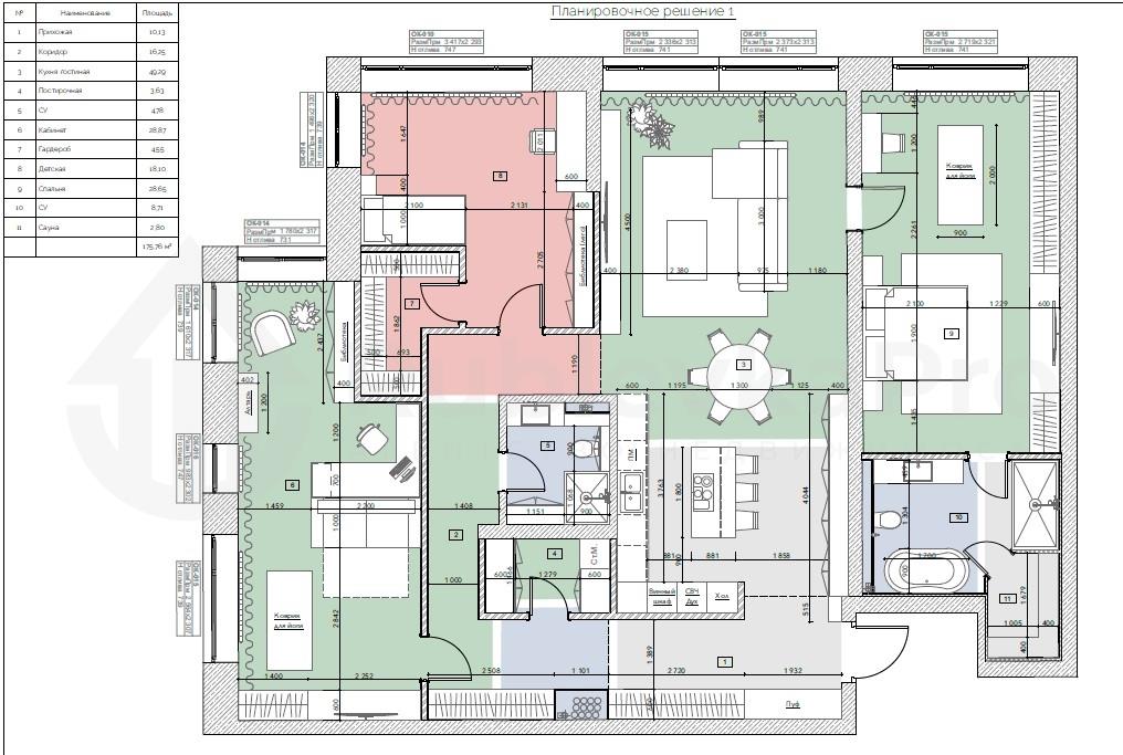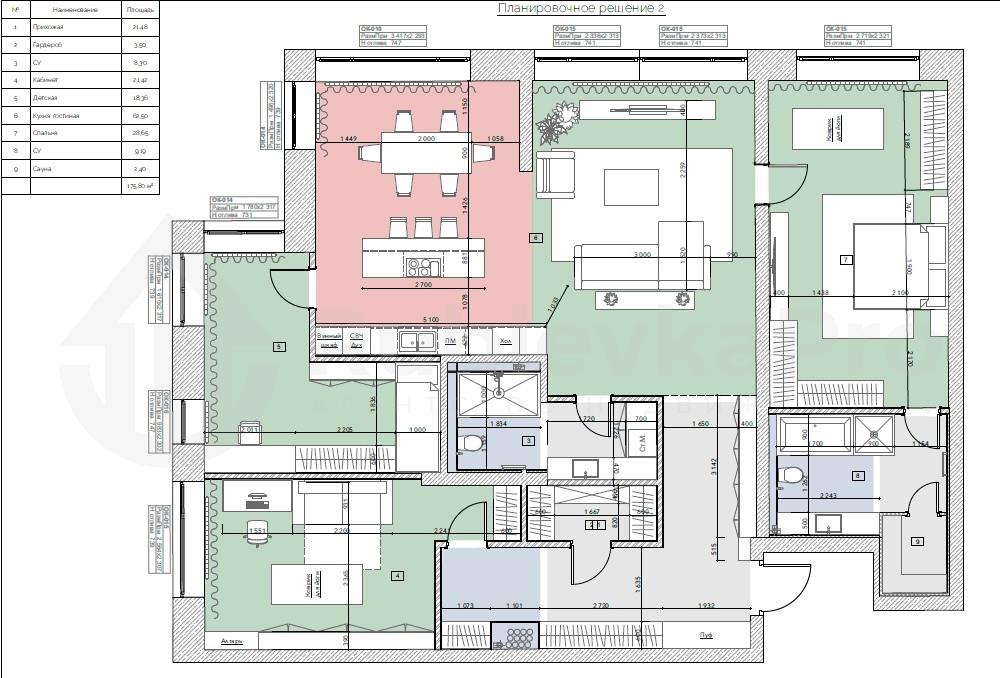 общая 180 м2, жилая 0 м2, кухни 30 м2 |