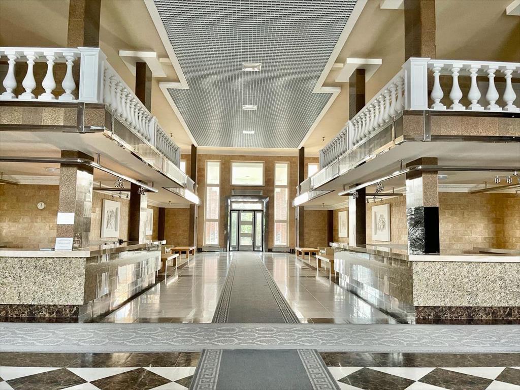 Элегантная входная группа дома представляет собой невероятных размеров вестибюль, отделанный мрамором, гранитом, с элементами мозаики. На этажах оборудованы подсобные помещения. Дом с подземным паркингом.