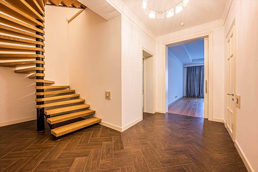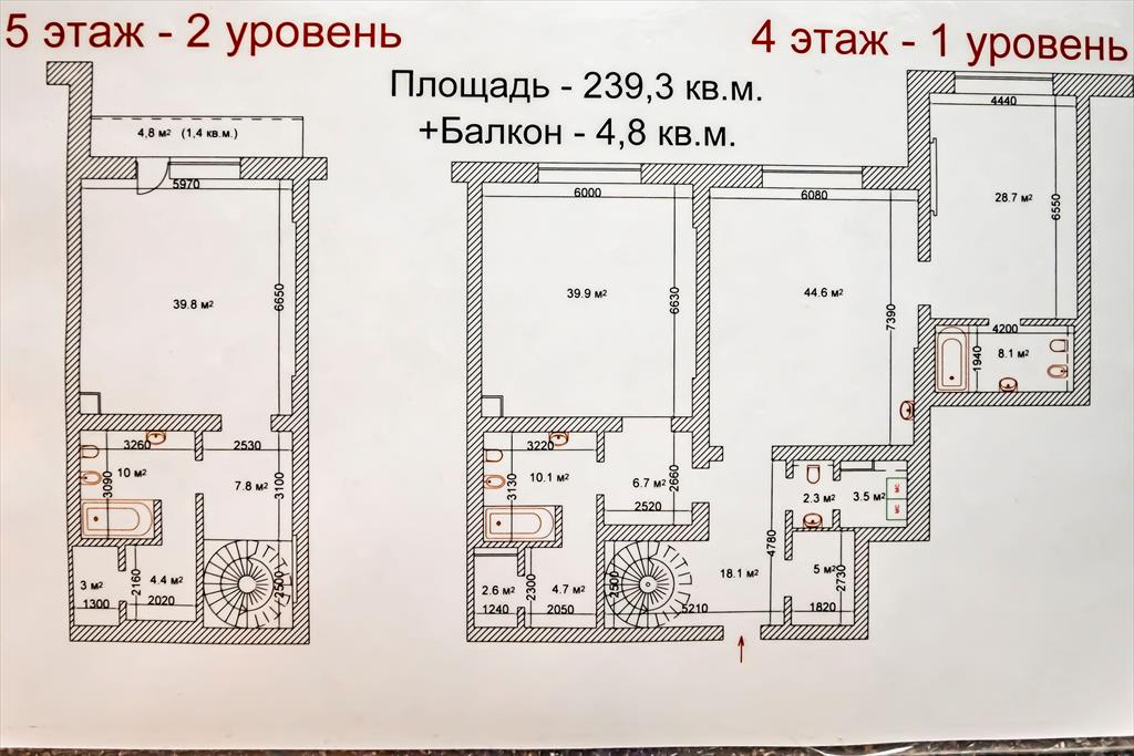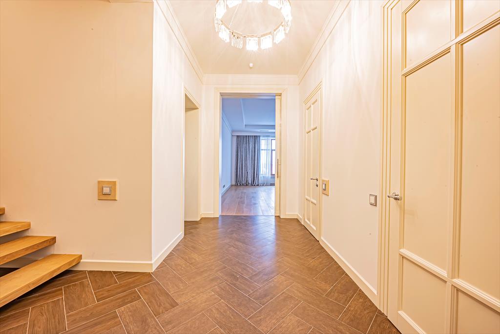 | Продам новую 4-комнатную двухуровневую квартиру площадью 240 м2 с потолками высотой 3,5 метра. На первом уровне расположены 2 спальни с санузлами, ливинг-рум, гостевой санузел с постирочной и гардеробная. На втором уровне мастер-спальня с ванной комнатой, а также балконом. Все окна выходят на парк и лес.