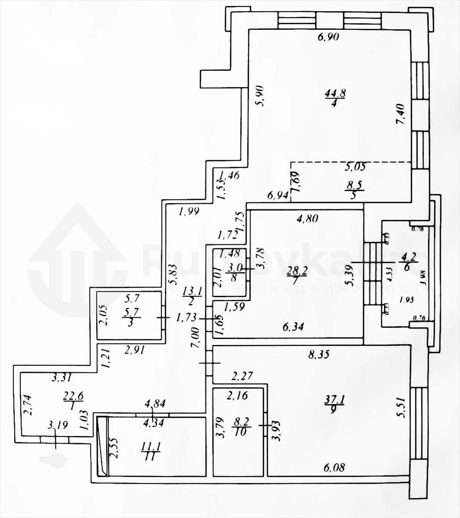 общая 182,3 м2, жилая 0 м2, кухни 53,3 м2 |