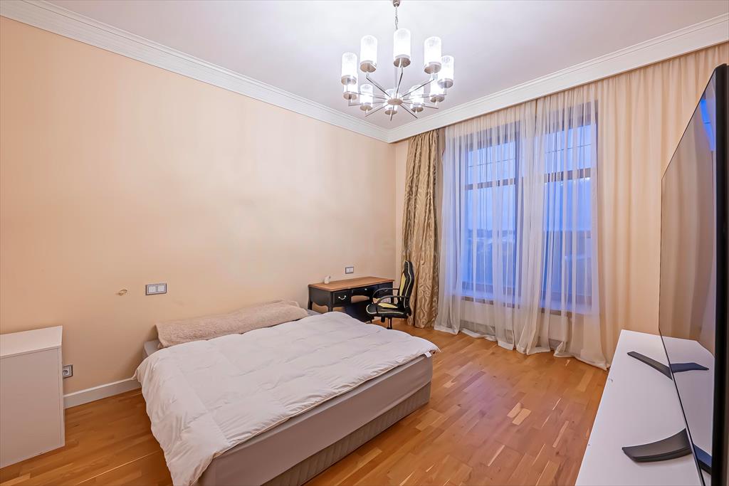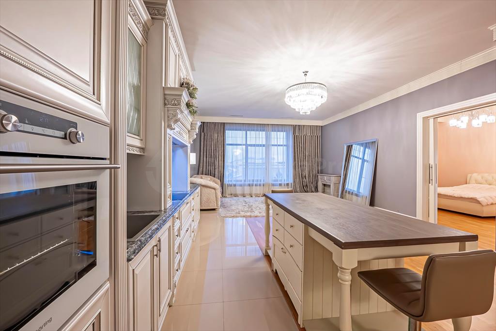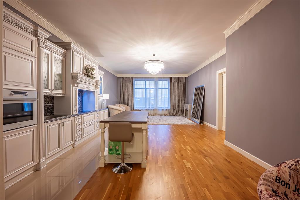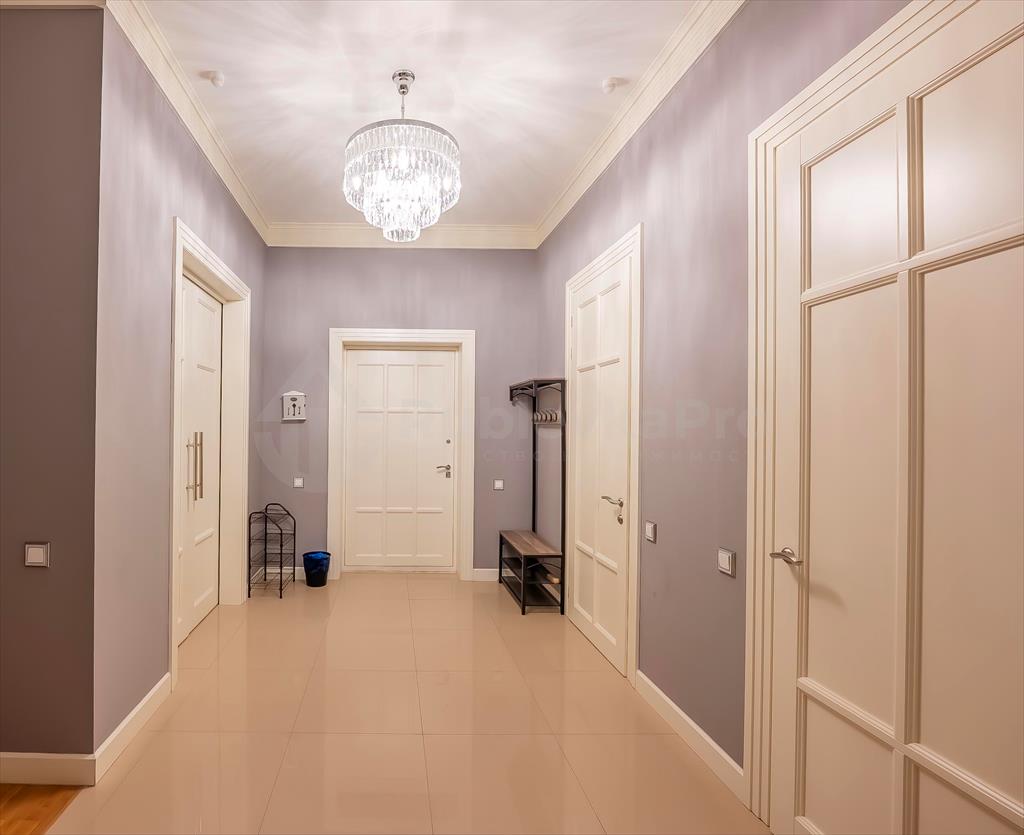 Продам 3 комнатную видовую квартиру на 4 этаже камерного дома в премиальном коттеджном поселке Азарово. Квартира расположена на 4 этаже 5 этажного дома. В квартире площадью 148 м2 с потолками 3,8 м и панорамными окнами расположена большая кухня- гостиная 49м2, две спальни по 18 м2, каждая со своим санузлом, в одной из спален гардеробная комната, место для кабинета/игровой 16,5м2, гостевой санузел, постирочная, гардеробная комната, просторный коридор. Ремонт выполнен в спокойных тонах.