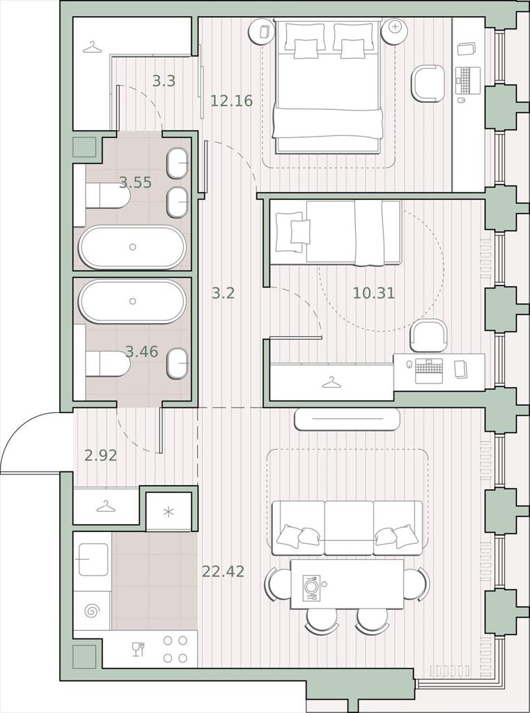 Представлены широкие возможности для поклонников разных видов спорта: от бега в ближайших парках и велозаездов до гребли, баскетбола, футбола, хоккея, фигурного катания и катания на лыжах. На каждый день подойдет World Class с открытым бассейном - он находится всего в 1 минуте от дома.