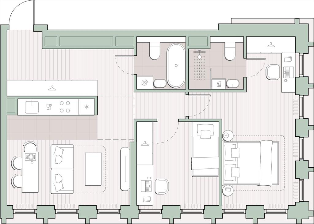 Продаётся 2-комнатная квартира общей площадью 63.54 кв.м. с отделкой white box. Квартира расположена на 20 этаже корпуса 4.1 в жилом комплексе бизнес-класса «Среда на Кутузовском» в пешей доступности от метро «Кунцевская».