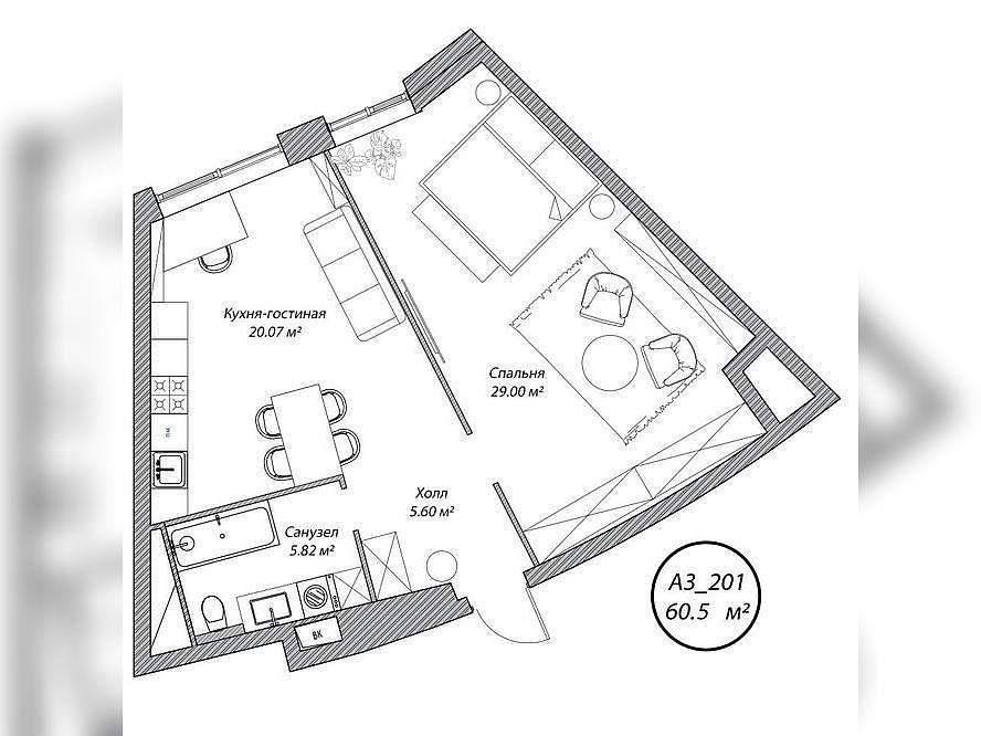 Однокомнатная квартира 60,50 м2 по ул. 5-я Мякининская 20 за 16013800 руб. |