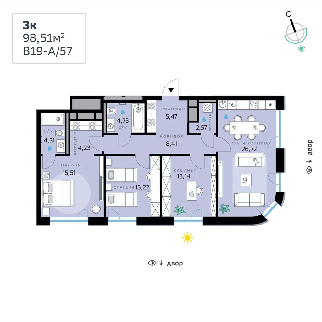 Трехкомнатная квартира 98,51 м2 по ул. 120 квартал 17 за 49619487 руб. |