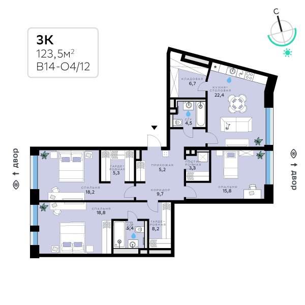 Трехкомнатная квартира 123,50 м2 по ул. 120 квартал 17 за 55303300 руб. |
