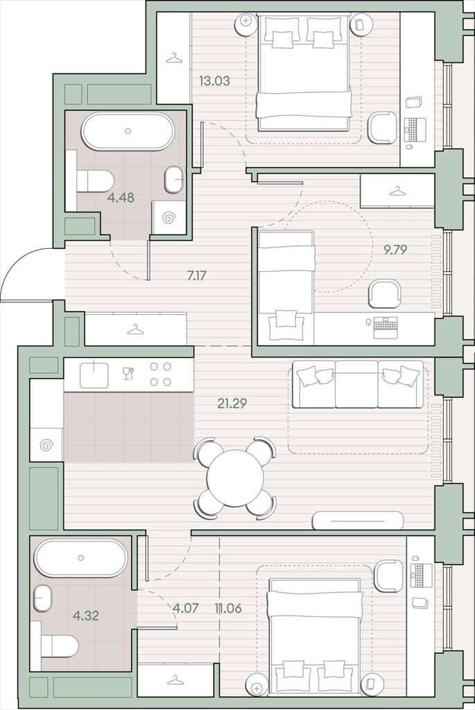 Трехкомнатная |