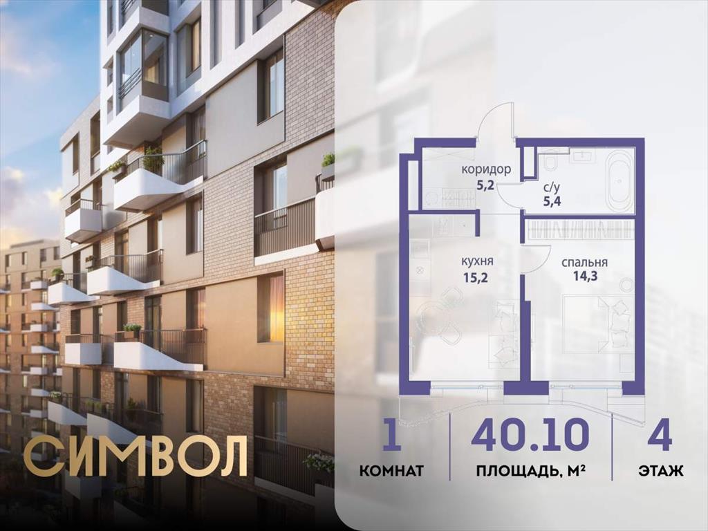 | Продается 1-комнатная квартира от застройщика: общая площадь 40.10 м, жилая 14.30 м, кухня 15.20 м, 4-й этаж, жилой квартал «Вдохновение», корпус 33 (секция 2) . Срок сдачи: 4 квартал 2027 года.