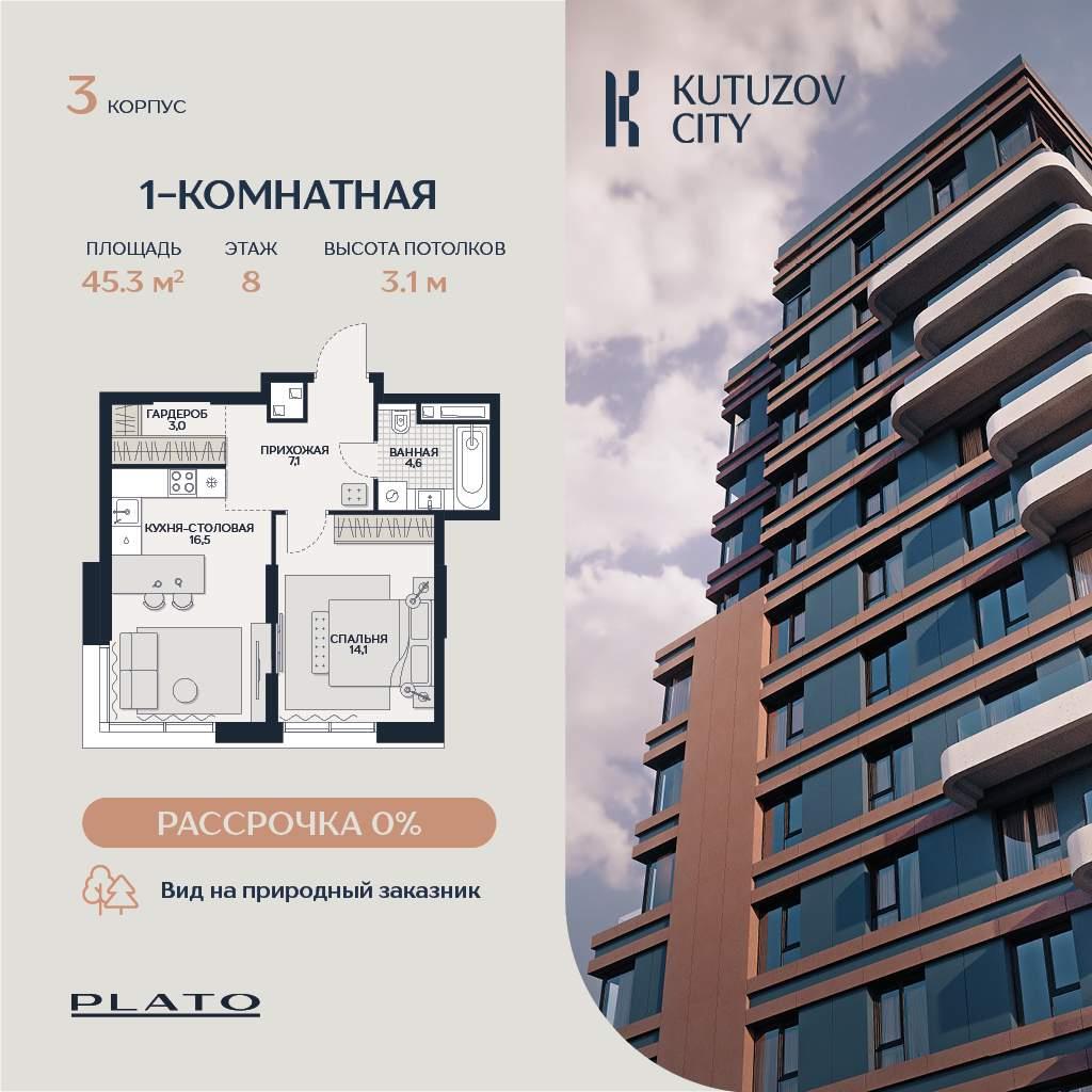 | Продаётся светлая однокомнатная квартира площадью 45,3 м в башне «Созидание» клубного дома «Кутузов Сити». Планировка квартиры продумана до мелочей и позволяет создать комфортное пространство для жизни. Просторная кухня-столовая с панорамными окнами объединяет обеденную зону, кухню и гостиную. Изолированная спальня обеспечивает уединённое пространство для отдыха. Для хранения вещей предусмотрена отдельная гардеробная. Просторная ванная комната позволяет разместить как душевую кабину, так и большую ванную. Большие окна наполнят квартиру естественным светом и делают интерьер стильным. Высокие потолки придают пространству ощущение свободы и лёгкости. Продуманная планировка позволяет эффективно использовать каждый квадратный метр. О проекте: «Кутузов Сити» - клубный дом на 220 квартир, разработанный совместно с бюро Atrium и Oleg Klodt Architecture & Design. Проект строится в престижном Западном административном округе Москвы, всего в нескольких минутах ходьбы от Кутузовского проспекта. Закрытая территория, приватный двор, подземный паркинг и стильные лобби создают атмосферу комфорта и безопасности. В двух шагах от дома находится крупнейшая природная территория Москвы - природный заказник «Долина реки Сетунь». Камерная застройка и развитая инфраструктура делают «Кутузов Сити» отличным выбором для тех, кто ценит качество жизни и близость к природе. |
