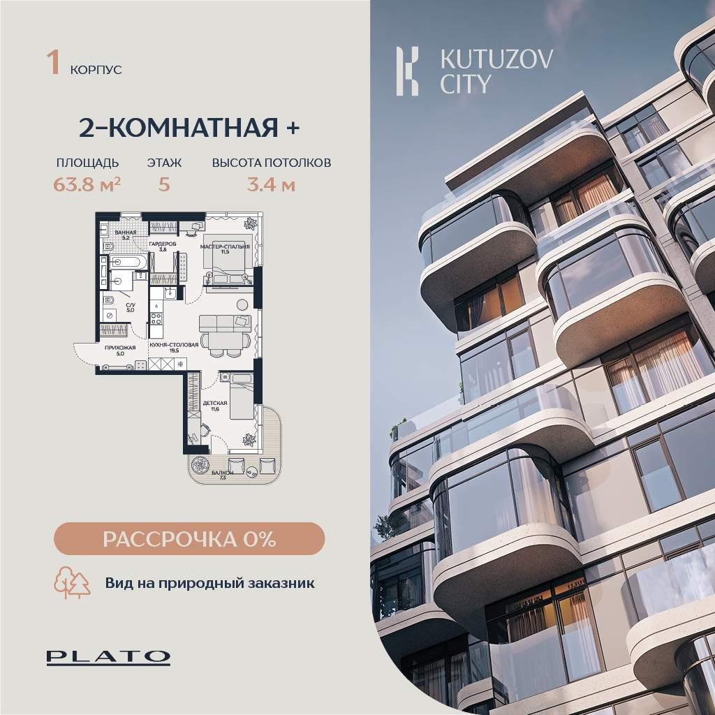 | Продаётся просторная квартира площадью 63,8 м в башне «Гармония» клубного дома «Кутузов Сити».