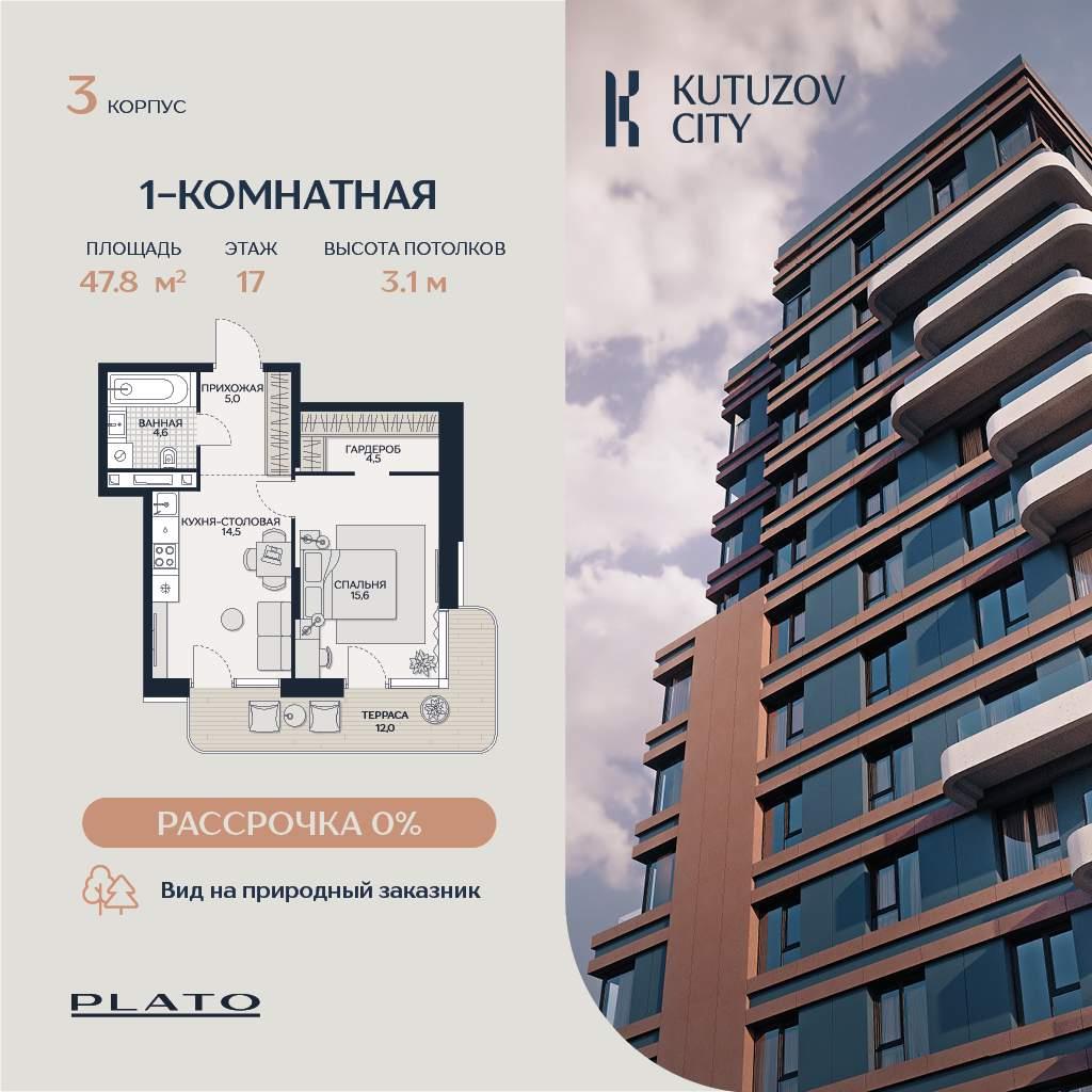 | Продаётся светлая однокомнатная квартира евроформата площадью 47,8 м в башне «Созидание» клубного дома «Кутузов Сити». Планировка квартиры продумана до мелочей и позволяет создать комфортное пространство для жизни. Просторная кухня-столовая с панорамными окнами объединяет обеденную зону, кухню и гостиную. Изолированная спальня обеспечивает уединённое пространство для отдыха. Для хранения вещей есть отдельная гардеробная, а также ниша в прихожей. Просторная ванная комната позволяет разместить как душевую кабину, так и большую ванную. Большие окна наполняют квартиру естественным светом и делают интерьер стильным. Высокие потолки придают пространству ощущение свободы и лёгкости. Продуманная планировка позволяет эффективно использовать каждый квадратный метр. О проекте: «Кутузов Сити» - клубный дом на 220 квартир, разработанный совместно с бюро Atrium и Oleg Klodt Architecture & Design. Проект строится в престижном Западном административном округе Москвы, всего в нескольких минутах ходьбы от Кутузовского проспекта. Закрытая территория, приватный двор, подземный паркинг и стильные лобби создают атмосферу комфорта и безопасности. В двух шагах от дома находится крупнейшая природная территория Москвы - природный заказник «Долина реки Сетунь». Камерная застройка и развитая инфраструктура делают «Кутузов Сити» отличным выбором для тех, кто ценит качество жизни и близость к природе. |