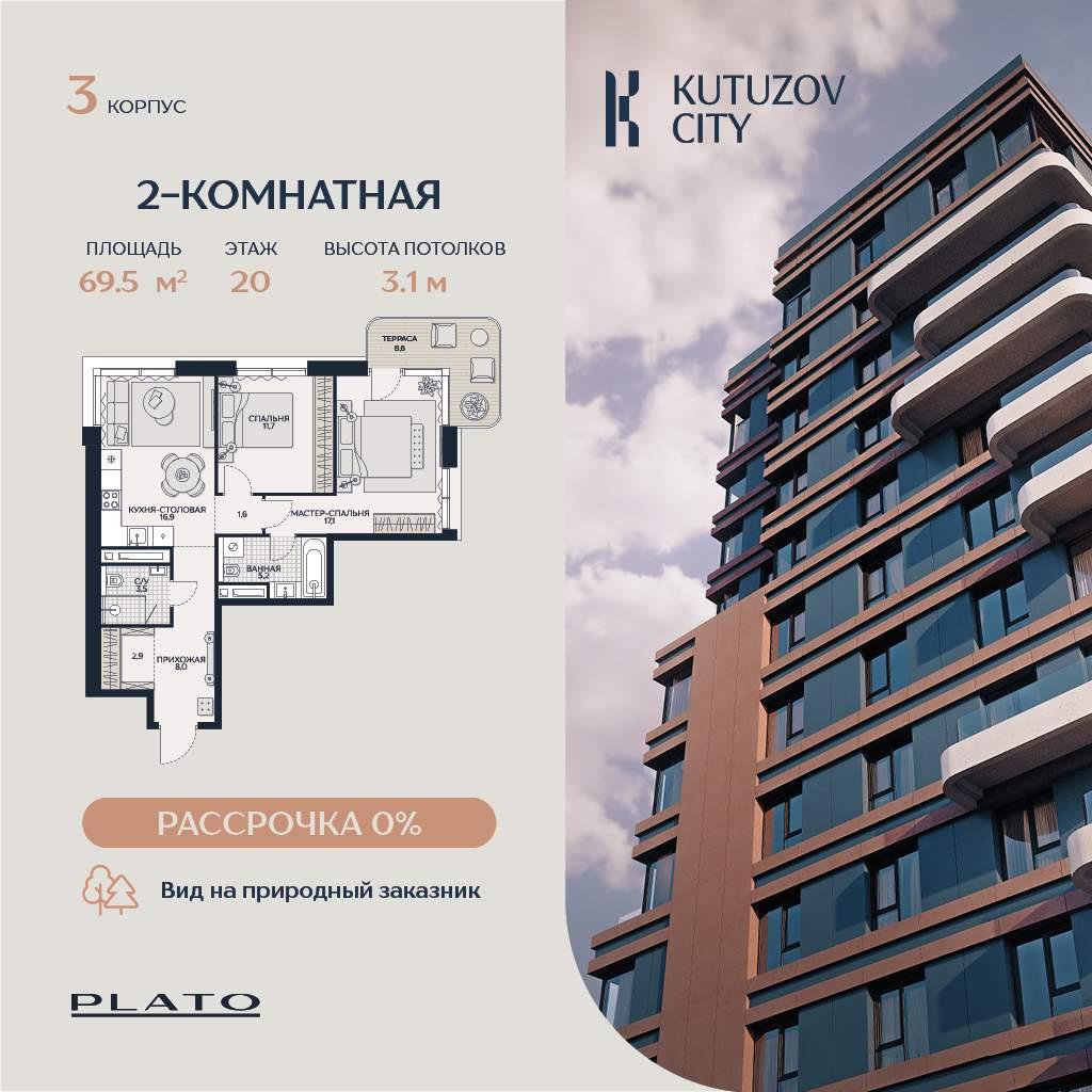 | Продается просторная двухкомнатная квартира площадью 69,5 м в корпусе «Созидание» клубного дома «Кутузов Сити».