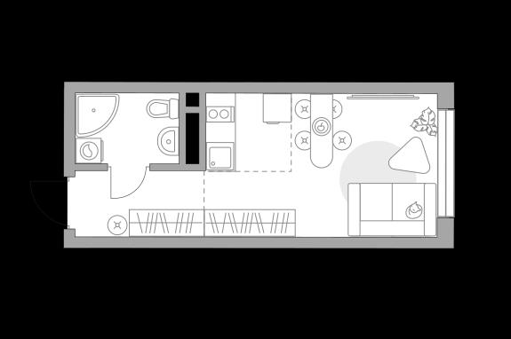 общая 18,78 м2, жилая 10,01 м2, кухни 2,57 м2 |