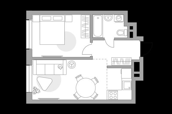 общая 41,04 м2, жилая 27,66 м2, кухни 4 м2 |