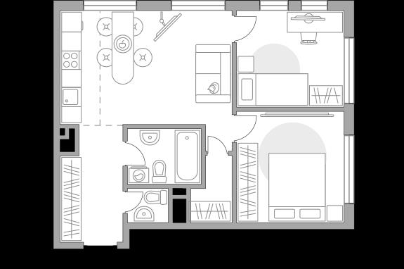 Жилая площадь 40.54 м2, кухня 4.81 м2. Площадь комнат: 16.73/12.73/11.08 м2, квартира без отделки.