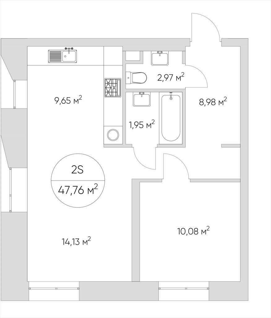 общая 47 м2, жилая 37,6 м2, кухни 0 м2 |