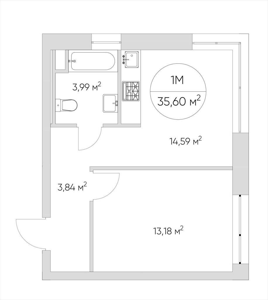 общая 35 м2, жилая 28 м2, кухни 0 м2 |