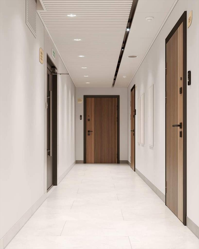 - В каждом лобби спроектированы общественный санузел, мягкая зона для комфортного ожидания курьера или такси, предусмотрены отдельные помещения для хранения колясок, велосипедов и самокатов, а также помещения для мойки лап собакам