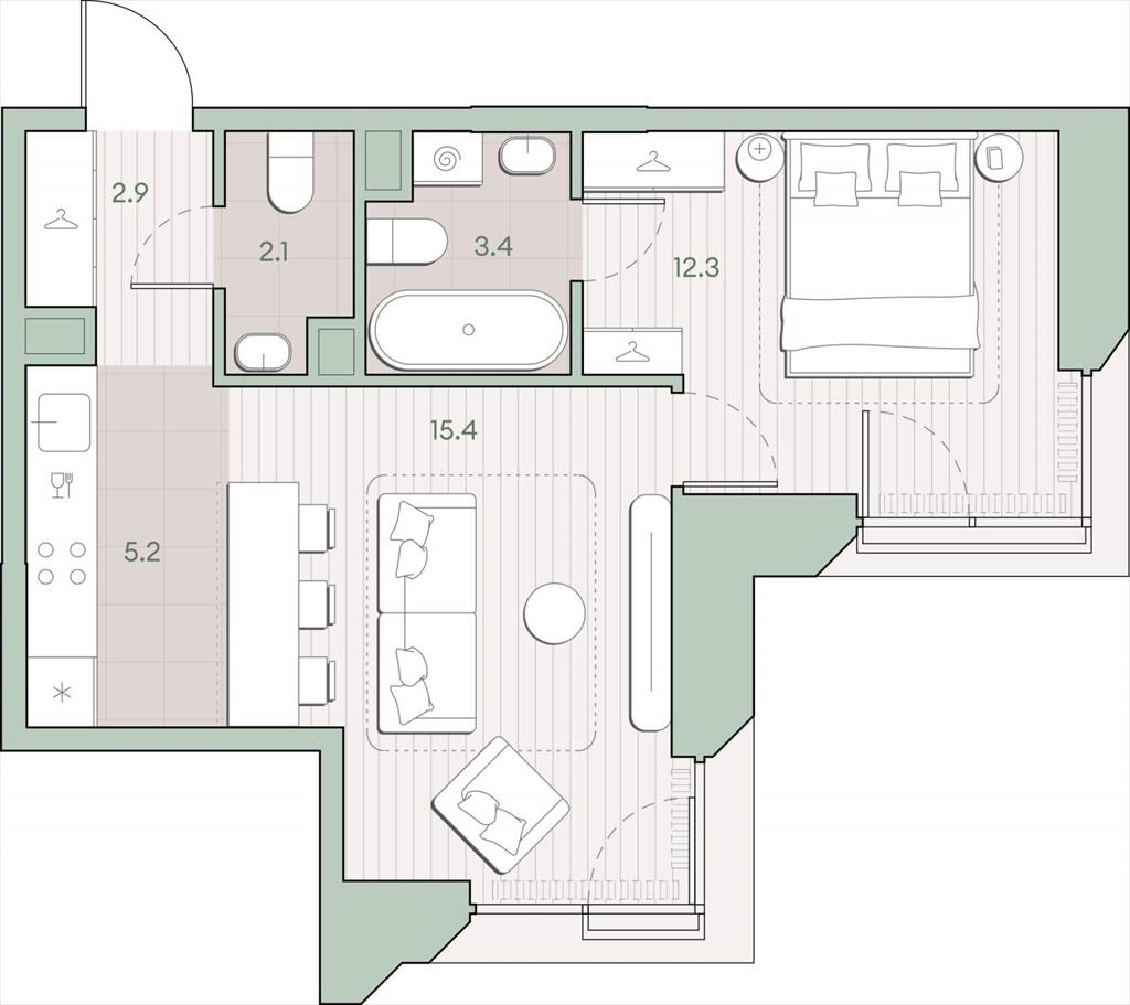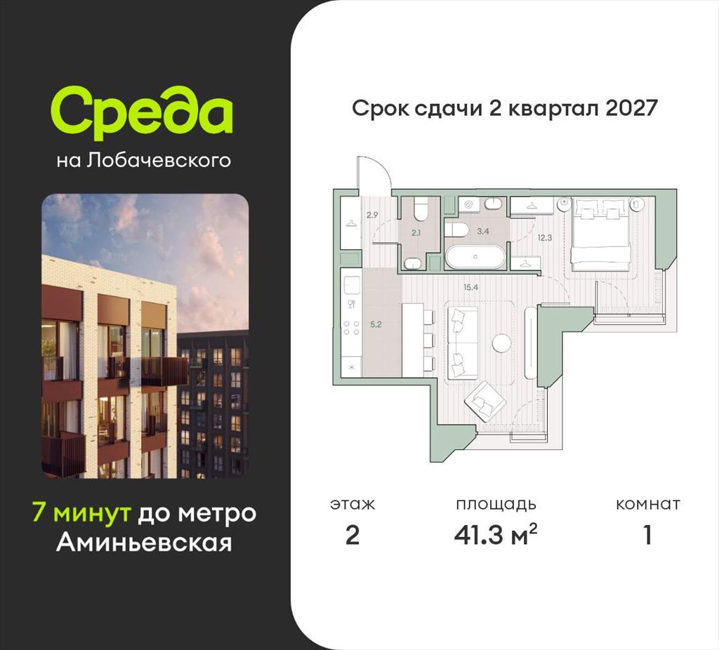 Продаётся 1-комнатная квартира общей площадью 41.3 кв.м. с отделкой white box. Квартира расположена на 2 этаже корпуса 5.1 в жилом комплексе бизнес-класса «Среда на Лобачевского» в пешей доступности от метро «Аминьевская».
