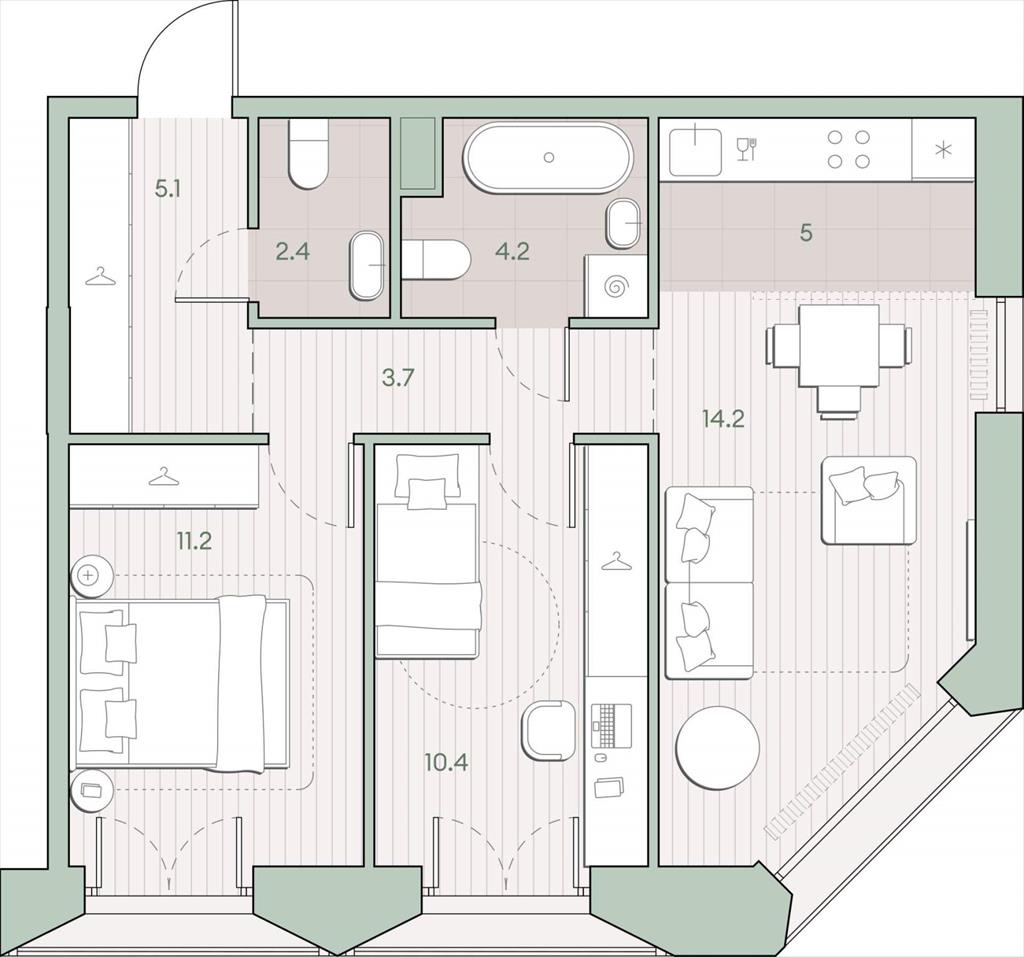 Продаётся 2-комнатная квартира общей площадью 56.2 кв.м. без отделки. Квартира расположена на 2 этаже корпуса 5.6 в жилом комплексе бизнес-класса «Среда на Лобачевского» в пешей доступности от метро «Аминьевская».