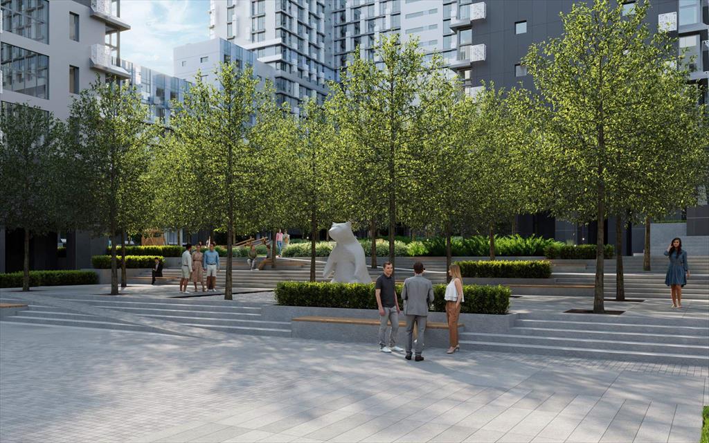 - На внутренней территории пространство с ландшафтным парком, детскими площадками, зонами для отдыха и арт-объектами.